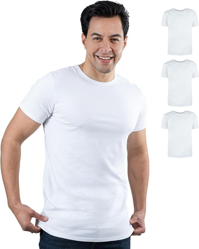 SKIPPER Pack of 3 Men’s Crew Neck T-Shirt Basic T-Shirts in White I Undershirt made of 95% Cotton and 5% Elastane | Short Sleeve Undershirt for Men I OEKO-TEX Certified